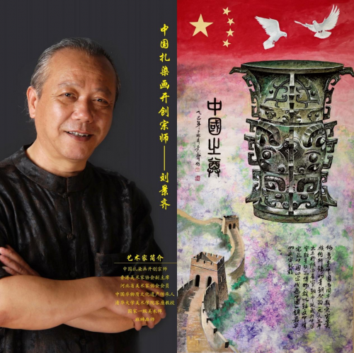 刘景齐,艺术家,男,汉族,1965年生于河北唐山 ,1985年毕业于河北工艺美术学院 ,现居北京,现为一级美术师 ,香港美术家协会副主席 ,河北省美术家协会会员 ,中国非物质文化遗产传承人 ,清华大学美术学院客座教授 ,水墨丹青书画院会员 。跟随国家探索文明起源成国家首批非遗创新人才,扎染画再现国宝文物,延续中华文脉为开派宗师,传承建设中华现代文明当香港美术家协会副主席 ,他是林风眠晚年生活助理 赵无极吴冠中的小师弟,四大博物馆亲自邀约指定文物绘画存档艺术家,中央美院邵大箴教授对他作品高度评价并亲题展名,科班出身毕业于河北美术学院被聘为清华美院教授,国内收藏风向标,联合国前秘书长潘基文向世界力推的中国艺术大师,扎染画引起十一世班禅额尔德尼重视赐封班禅画师,雅昌官方评估中国最具学术价值和升值潜力艺术家,也是中国国宝《何尊》官方指定创作艺术家。