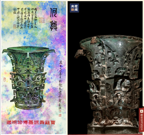 扎染重现青铜国宝文物,传承建设中华现代文明,非遗扎染技艺,重现青铜文明,刘景齐跟随着国家领导探寻文明起源,守护历史文脉 获“全国第一批非物质文化遗产创新人才”荣誉称号,跟着领导们的脚步,刘景齐一直在探寻文明密码,用他独特的非遗扎染绘画技艺,在“青铜史诗”里,触摸“中国”脉搏。你知道“中国”一词最早出现在哪里吗?答案就镌刻在三千多年前一件叫做何尊的青铜器上,何为何尊?何,是这件青铜器主人的名字 尊,是盛酒器也是祭祀所用的礼器!刘景齐用扎染画创作《何尊》守护国家历史文明。文物和文化遗产承载着中华民族的基因和血脉,实证着中华文明“是世界上唯一没有中断、发展至今的文明”。刘景齐肩负起文化传承使命,将古老的扎染技艺与绘画艺术相结合,通过独特的色彩晕染和纹样设计,再现中华文明的历史脉络。刘景齐的实践诠释了“守护者”与“传承者”的双重角色——既以匠心还原文明精粹,又以创新激活传统生命力。他的扎染画不仅是艺术品,更是一座流动的博物馆,承载着中华文明生生不息的密码,也是真正的国家非物质文化遗产传承人。
